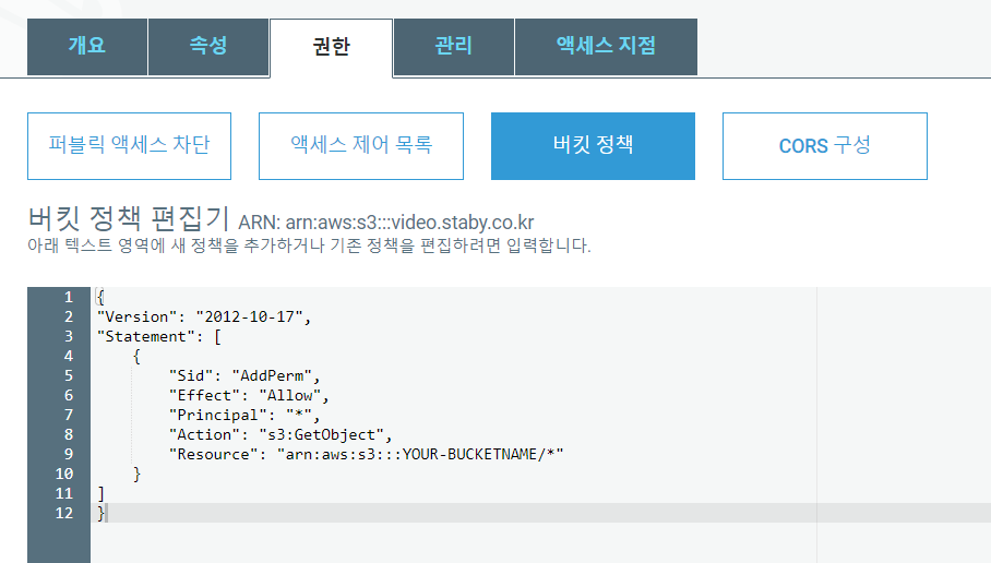 * 버킷 권한 설정