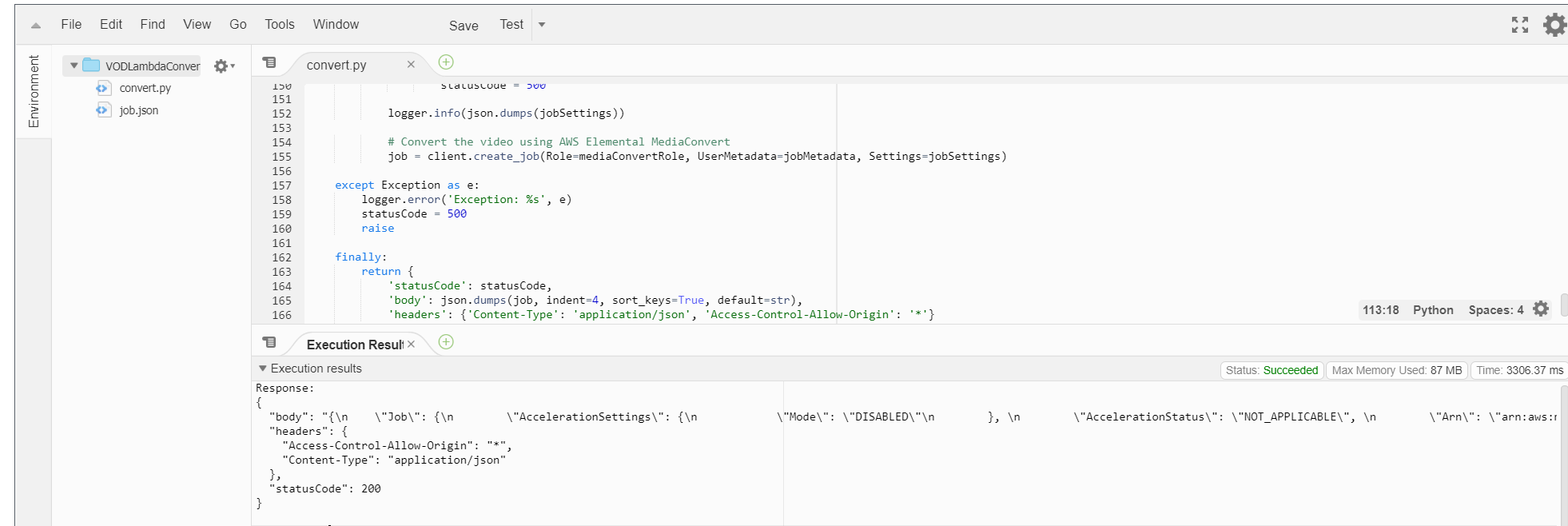 - convert.py, job.json 파일 zip파일로 압축 및 생성