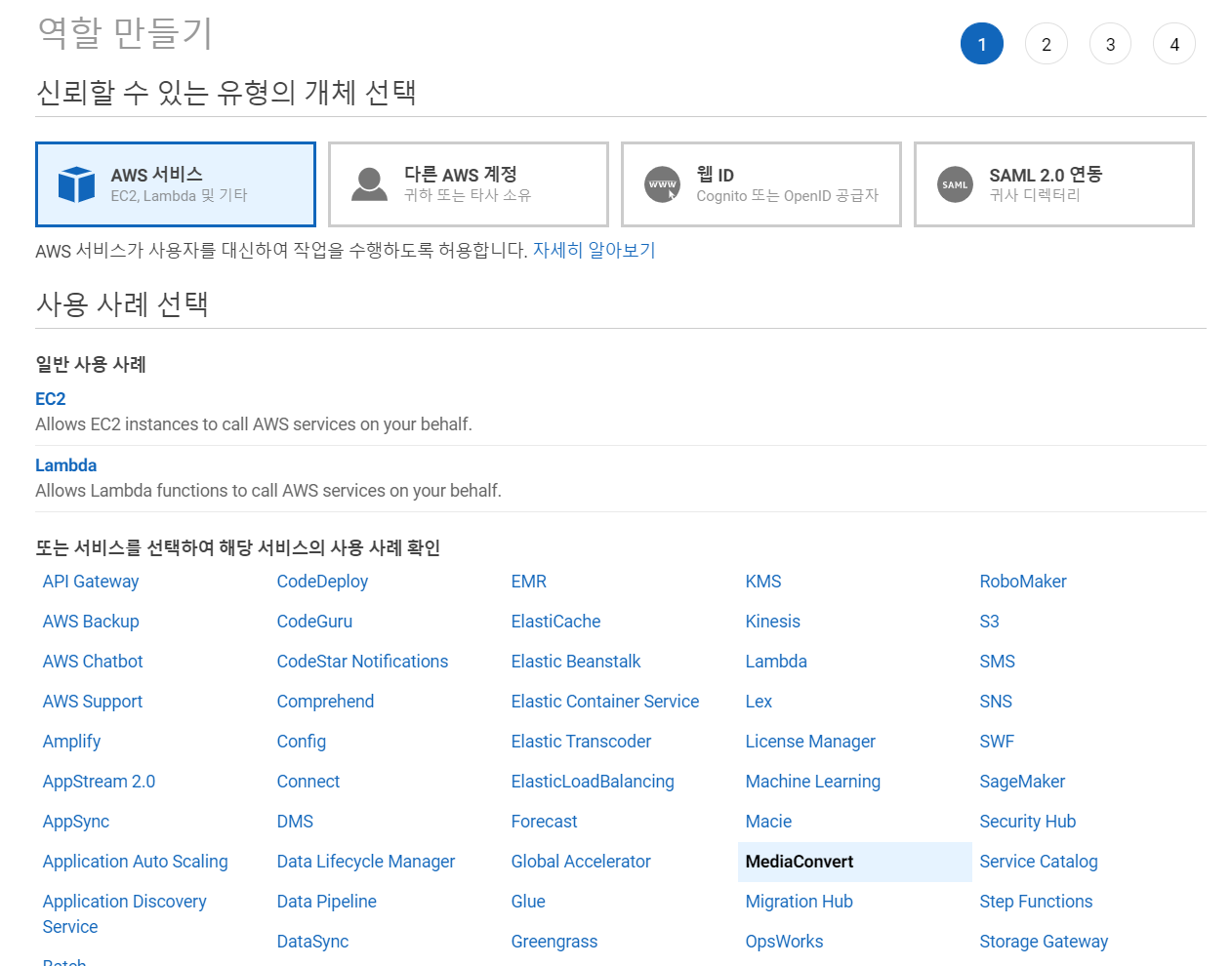 2. 역할1 만들기 (MediaConvert 정책 만들기)