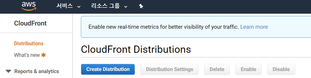 - Create Distribution 클릭