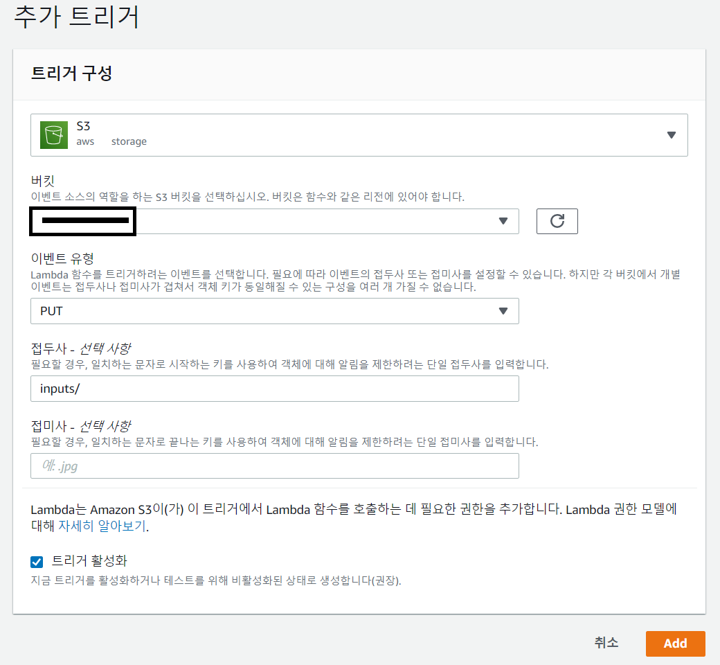 - "+트리거 추가" 클릭 후 S3 검색 및 지정