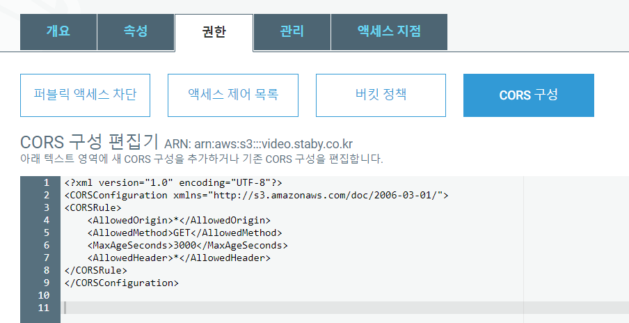 * 버킷 CORS 권한 설정