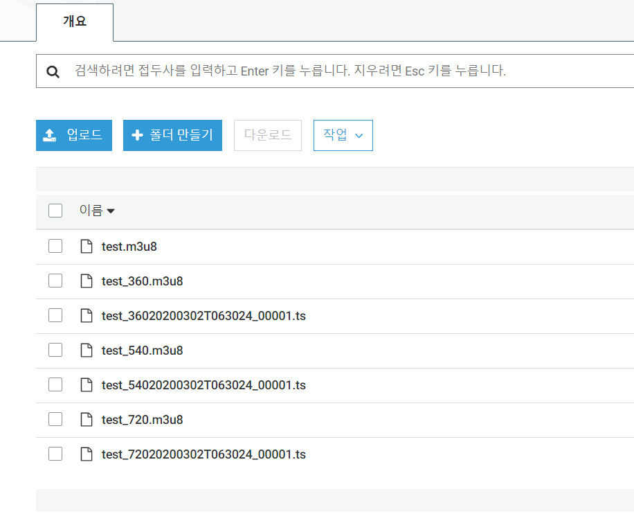 - HLS 파일이 화질에 따라 자동 생성 되었음을 확인