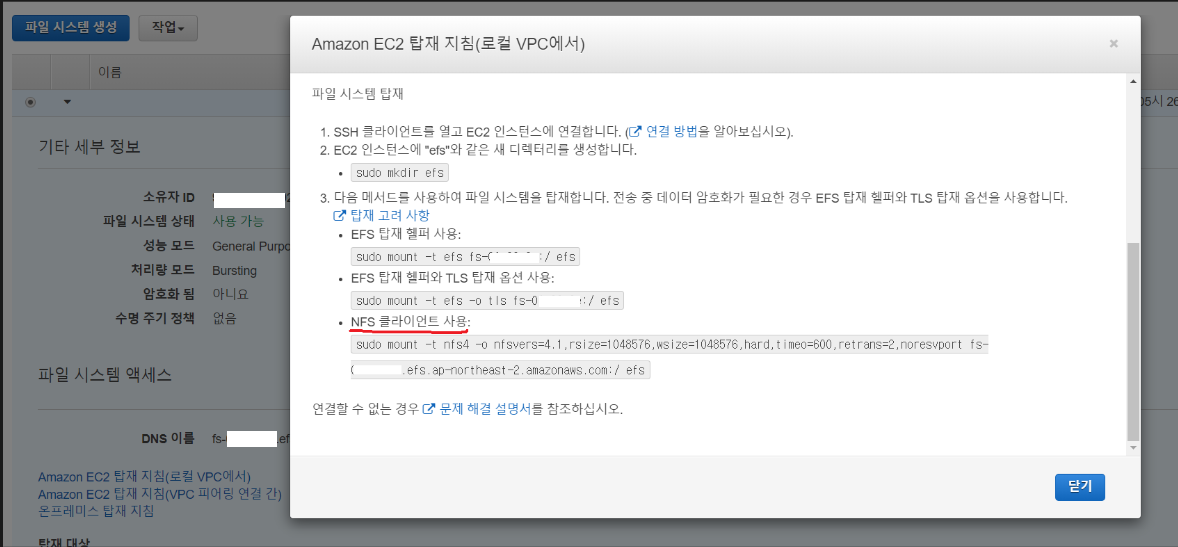 amazon-efs-util을 설치 한 후 아래 순서대로 진행해주시면 됩니다.