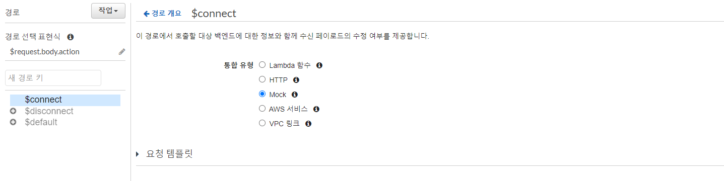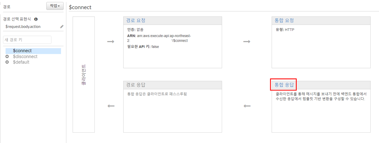 * 다른 액션 라우트 키들은 통합응답이 필요없지만 $connect의 경우 connection 후 자동적으로 200 응답코드에 대한 처