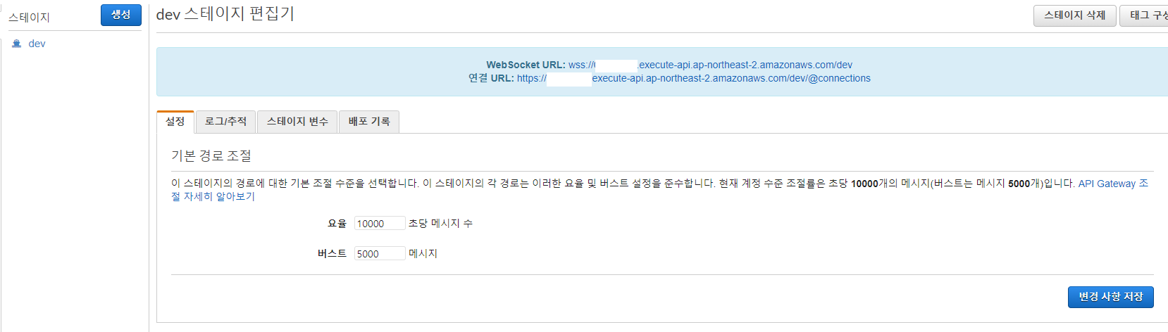 2. websocket URL은 실제 클라이언트가 소켓 통신한 wss 경로이며, 아래 연결 URL은 HTTP 백엔드 API에서 연결중인