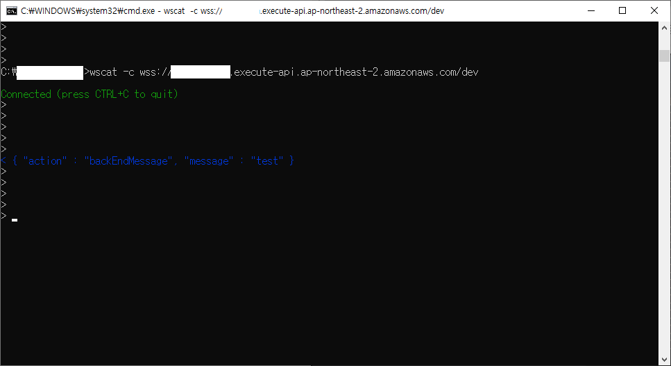 // WebSocket 백엔드 메세지 전송 URL 설정 정보 (* 연결 URL은 @Connections 경로는 제외)